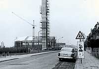 - vor dem Kirchbau war zunächst der Turmbau notwendig. In 31 Tagen wurde ununterbrochen der Beton für den Turm gegossen, so dass sich Präses Wilm über die Störung der Sonntagsruhe beschwerte. So musste dem Präses das „Gleitschalverfahren“ erklärt werden, das eine Arbeitsunterbrechung unmöglich machte: Beton muss dauerhaft „fließen“, um bearbeitet zu werden. Nachts wurde die Baustelle angestrahlt, so dass die Bauleute den Turm bis zur Höhe von 41m fertigstellen konnten.