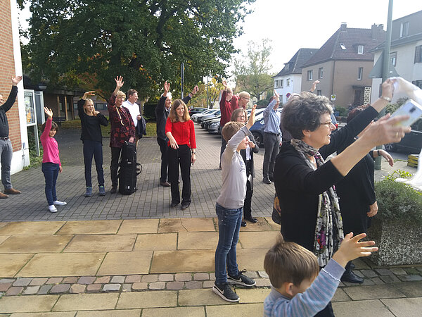 "Gemeinde im Gespräch", das Kirchkaffee nach dem Gottesdienst, eröffnete einen regen Austausch zu der Bedeutung unserer Gemeindepartnerschaft Prag 2.0. Bemerkenswert ist, dass in dem regen Gedankenaustausch die enger werdenden Kontakte durch die nachwachsende Generation junger Familien als besonders ermutigende Perspektive hervorgehoben wurden. Die Kinder waren es, - natürlich unterstützt durch ihre Eltern - die sich sehr schnell zu Hause fühlten und den Aufenthalt in den Gastfamilien, beim Besuch in Olderdissen und den intensiven gemeinsamen Spielen im Spielebereich des Dietrich-Bonhoeffer-Zentrums zu ‚ihrem‘ Aufenthalt machten. Im gemeinsamen Mittagessen - begleitet von einem kleinen Kammerkonzert unter Leitung von Manuel Köhring - und dem Reisesegen des Posaunenchores zum Abschied vor der Matthäuskirche konnte man noch einmal die Begeisterung und die gemeinsame Verbundenheit für die Zukunft spüren.