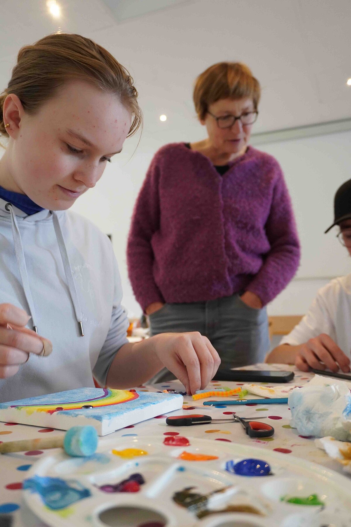 Ergänzend zu den Hauptamtlichen wird der Kurs auch von ehrenamtlichen Teamer*innen begleitet. Sie ermöglichen eine persönliche Betreuung vor allem in Kleingruppenarbeit oder auf der Freizeit. Unterschiedliche Rollenmodelle und Lebensgeschichten (jüngere & ältere Personen, haupt- & ehrenamtlich) bieten Identifikationsmöglichkeiten für die Konfis.
